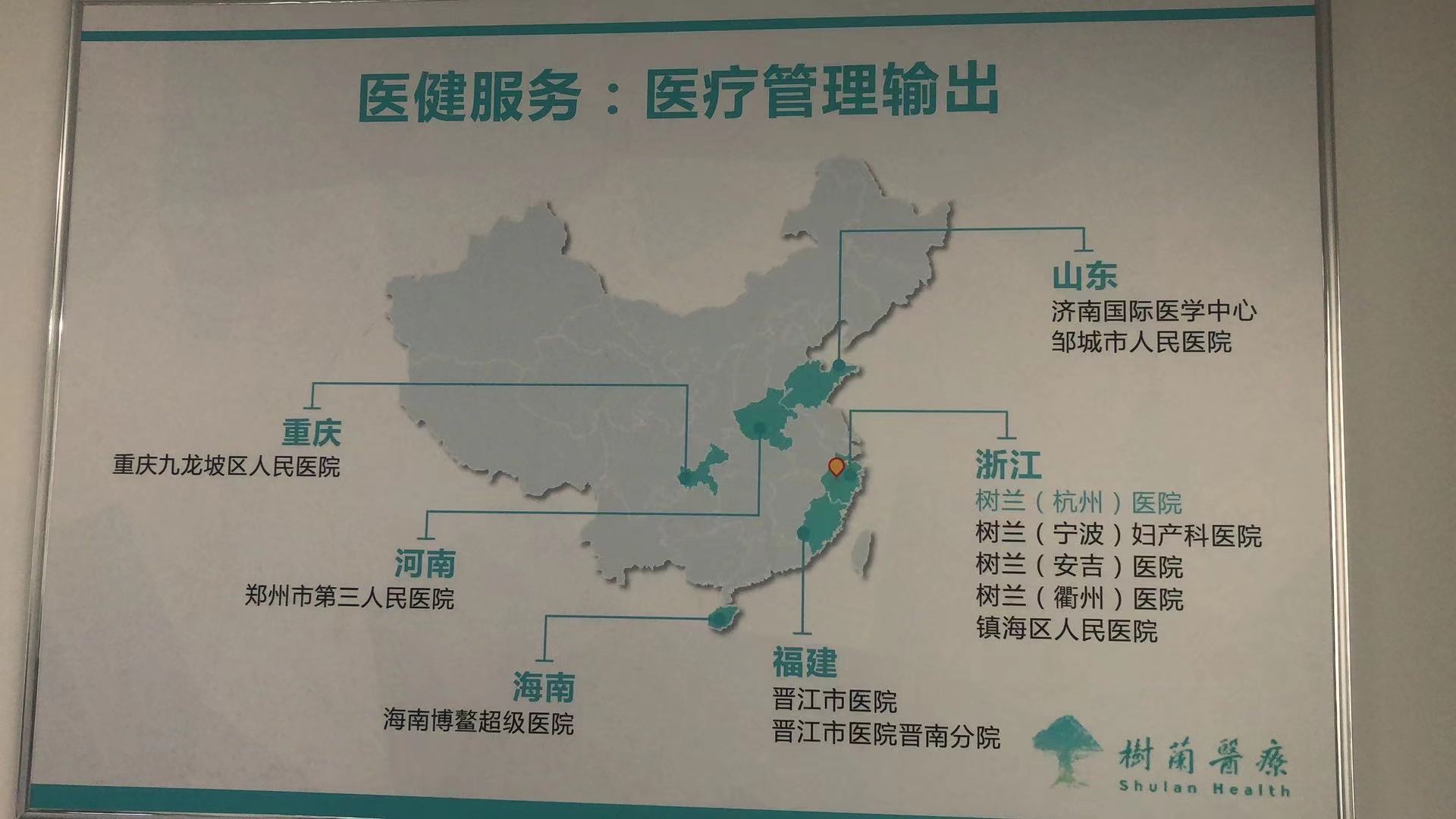 目前旗下医疗机构包括:树兰医疗目前建有树兰(杭州)医院、树兰(安吉)医院、树兰良渚国际医学中心(筹)、树兰(济南)国际医院(筹)、树兰(衢州)医院 (筹)等。树兰医疗河南项目:郑州市第三人民医院。